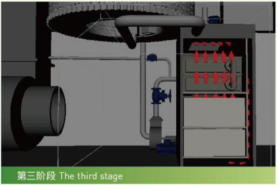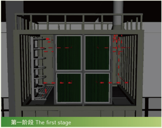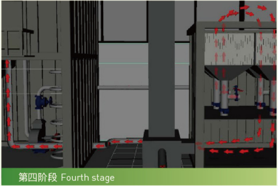 | 第三阶段:脱附废气经过余热加热后再进入催化燃烧系统最终HO2,CO2,完成无害化治理。 | 第四阶段:同时可选脱附后高浓度废气进冷凝回收或高能蓄热式RTO治理。 |